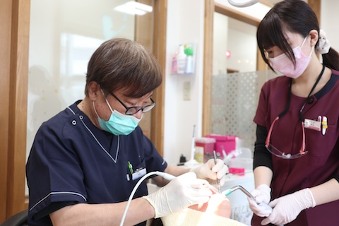 初めての方は、まずレントゲン撮影と検診を行います。 その後、衛生士による口腔内のお掃除をさせていただく場合もあれば、痛みや腫れがある場合は症状が和らぐよう処置をさせていただく場合もございます。