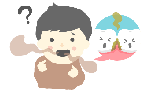 虫歯は、プラークや歯石の中にいる細菌が食べ残しを摂取し、分解する時に発生する酸によって歯を溶かすことでできるのですが、この酸の臭いと食べかすの分解臭が混ざることで臭いを放つため、口臭となります。