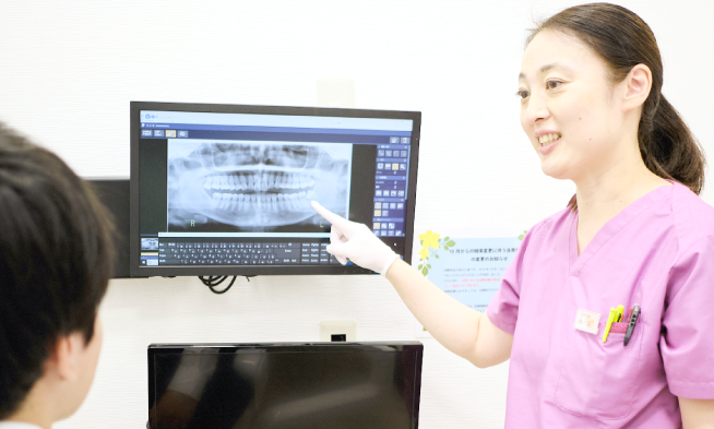 歯科医師の目視とレントゲン写真を使用してむし歯の有無を調べます。