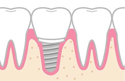 インプラント治療とは、歯を失ってしまったところの顎の骨に人工的に成型した歯を埋め込む治療のことをいい、周囲の歯を削ることなく失ってしまった歯の機能を回復することができます。 見た目がよく、他の歯への負担も少ないです。