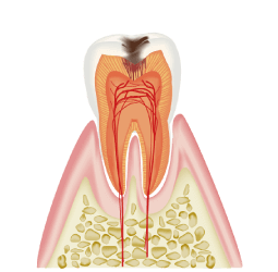 歯の上部が完全に無くなってしまった状態になると、神経も壊死しており、痛みも感じなくなっています。