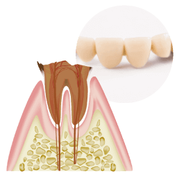 神経を取り除いて歯の根の中をきれいに清掃し、土台と被せ物をするために何回かご来院いただく必要があります。