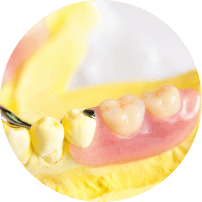 部分入れ歯は、無くなった歯の隣を入れ歯のフックがかかるように削ります。型取り、かみ合わせの確認をするため、作成時には複数回ご来院いただく必要があります。