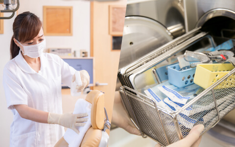 治療に使用した器具を、専用の機械を用いてガス滅菌しています。この滅菌ができている歯科医院は、全国でも数少ないと言われています。もちろん、検温や消毒も徹底しています。