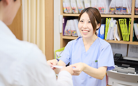 処置終了後、そのまま次回のご予約をお取りします。新しい診察券をお渡しいたしますので、次回はそちらを受付までお持ちいただきます。お会計を受付もしくは自動精算機で済ませてお帰りください。