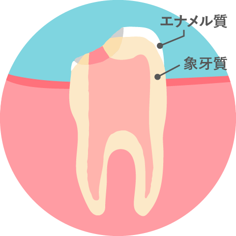 歯の表面は硬いエナメル質に覆われていますが、歯が欠けてしまったことでエナメル質がはがれ、その中の象牙質が露出してしまう可能性があります。