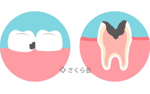 穴があいてしまうほど進行した虫歯があると、その穴に食べ物が挟まることが増えます。